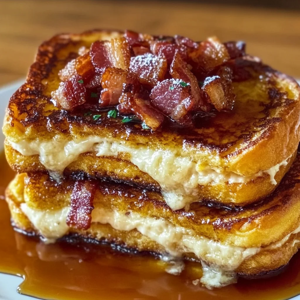 - Plate and Serve: Once they’re golden and glorious, take them off the skillet. Cut your stuffed French toast diagonally – it just makes them look extra fancy! Drizzle generously with extra maple syrup, give them a light dusting of powdered sugar, and sprinkle with that reserved crumbled bacon. If you’re feeling extra decadent, a dollop of whipped cream or some fresh berries would be heavenly additions.