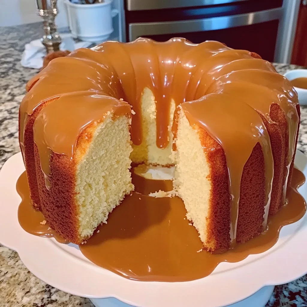 Store the pound cake, once completely cooled and the caramel sauce has set slightly, by wrapping it tightly in plastic wrap and then in aluminum foil. It can be kept at room temperature for up to 3 days. If it’s very warm in your kitchen, or if you have leftover caramel sauce, you might want to store it in an airtight container in the refrigerator. For longer storage, you can freeze the unfrosted cake (or frosted, if the caramel has set) by wrapping it tightly in plastic wrap and then in aluminum foil, then placing it in a freezer-safe bag or container for up to 3 months.