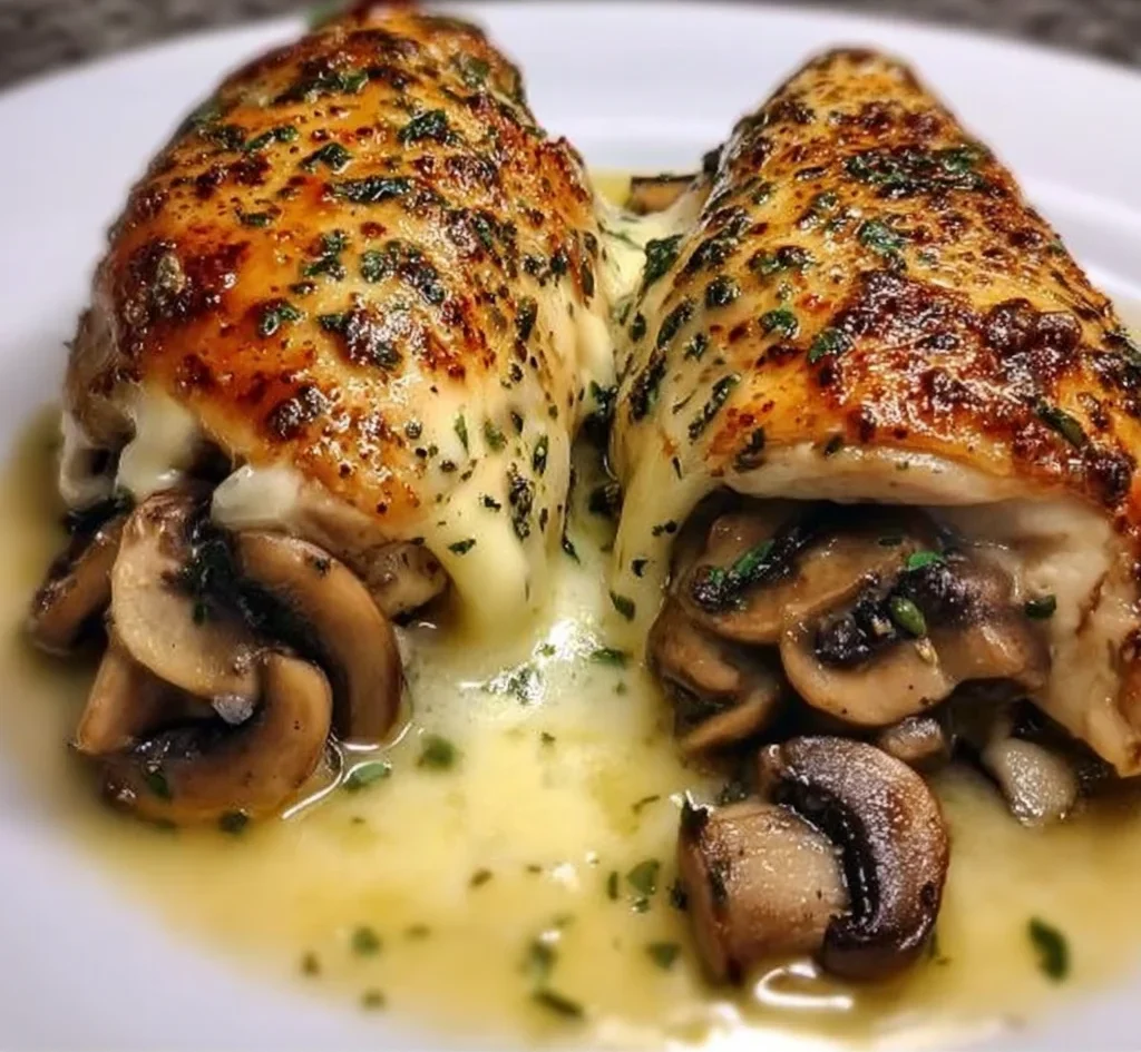 Cheesy Garlic Butter Mushroom Stuffed Chicken
