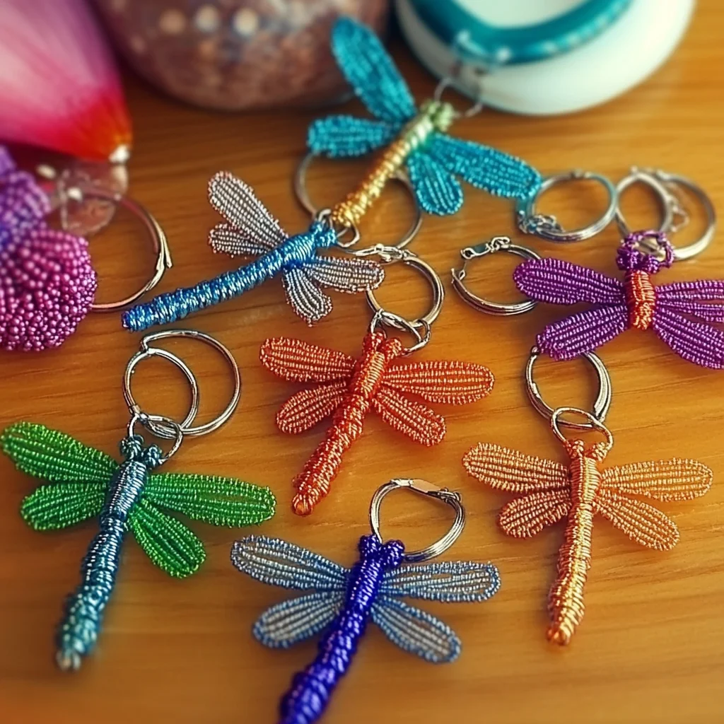 Now for the final touch: attaching your creation to the key ring. Take that little bit of pipe cleaner end you have left from making the body. Wrap it securely around your key ring or lobster clasp. Give it a good twist so it’s nice and firm. If you want an extra-secure hold, you can use your jewelry pliers to gently clamp down on the twisted ends. And voilà! Your dragonfly is ready to accompany you everywhere. - Step 4: Adding Those Extra Touches (Optional Fun!)