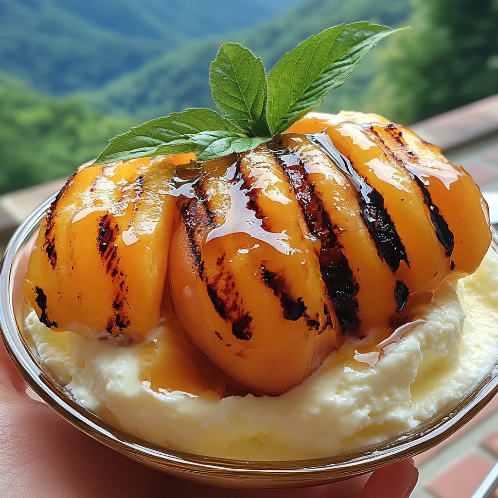 - Step 6: Place one or two warm peach halves cut-side up in a bowl. Top generously with a big scoop (or two!) of cold vanilla ice cream. Drizzle with honey or maple syrup. Add optional crushed nuts, whipped cream, and garnish with a fresh mint leaf. Serve immediately.