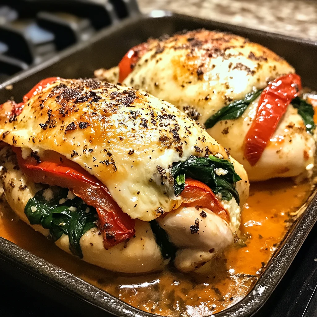Roasted Red Pepper, Spinach, and Mozzarella Stuffed Chicken