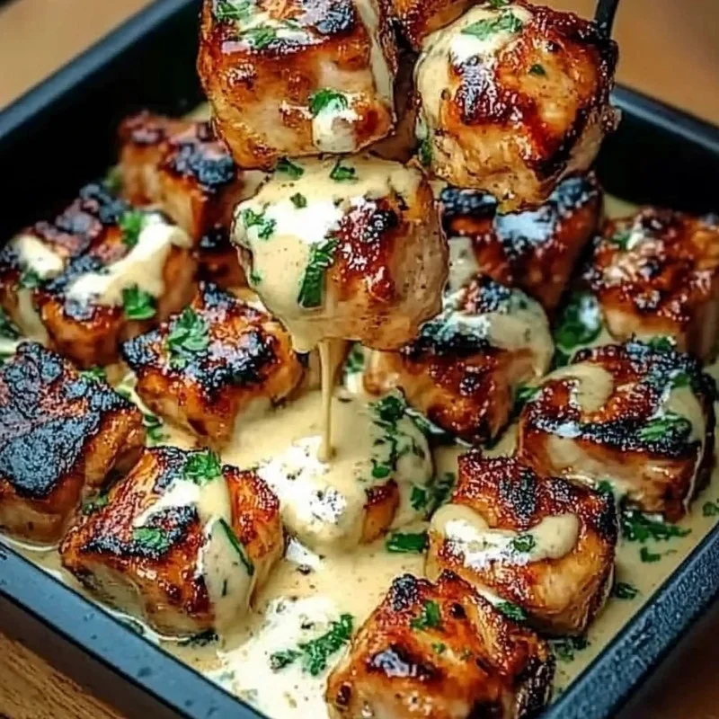 Easy Grilled Chicken Bites with Amazing Creamy Garlic Sauce