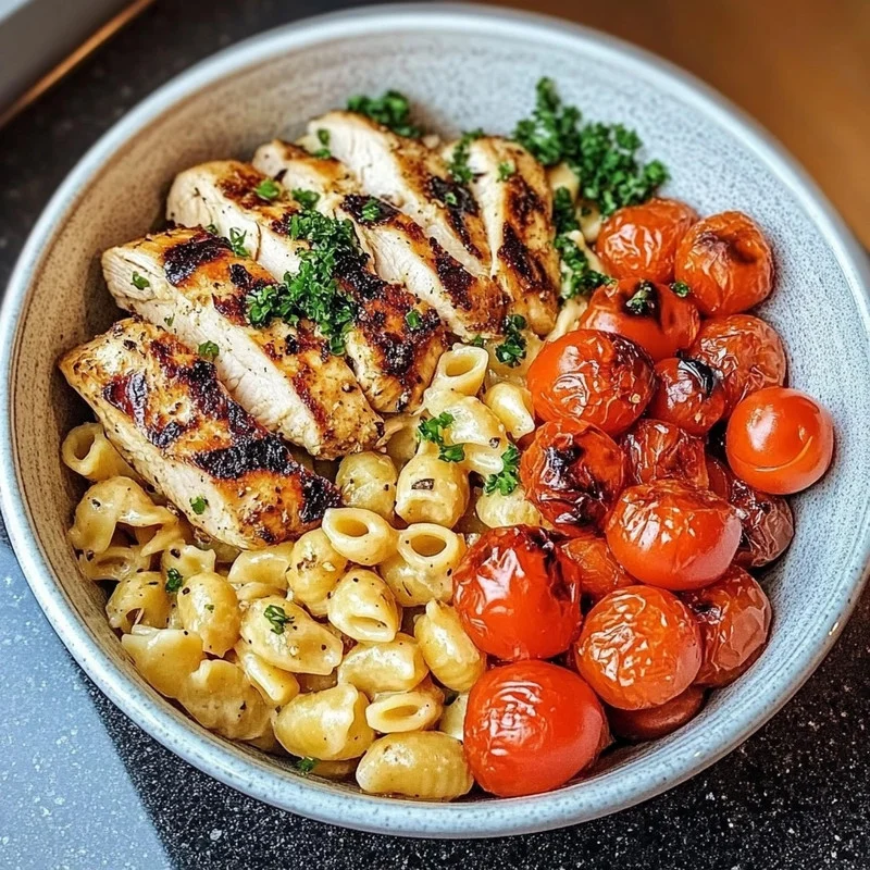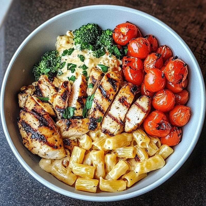 Oh, friend, let me tell you about a dinner that just feels right. You know those nights when you want something comforting, something packed with flavor, but also something that feels a little fresh and not too heavy? This Insanely Tasty Grilled Chicken & Veggie Bowl with Creamy Pasta is EXACTLY that. It brings together everything I love: juicy grilled chicken, crispy roasted potatoes, sweet blistered tomatoes, and a dreamy, cheesy pasta base, all in one happy bowl. It’s the kind of meal that makes everyone at the table smile, and honestly, it’s way easier than it looks. Trust me, this is going to become a regular in your dinner rotation!