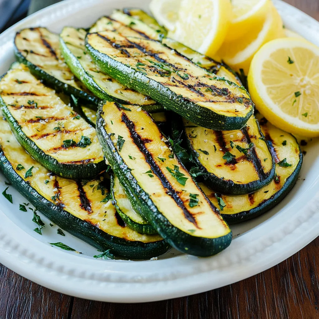 - Step 6: The final touch: Take the zucchini off the grill and arrange them prettily on a serving dish. Squeeze that fresh lemon juice all over the top. This really wakes up all the flavors!