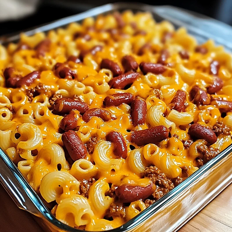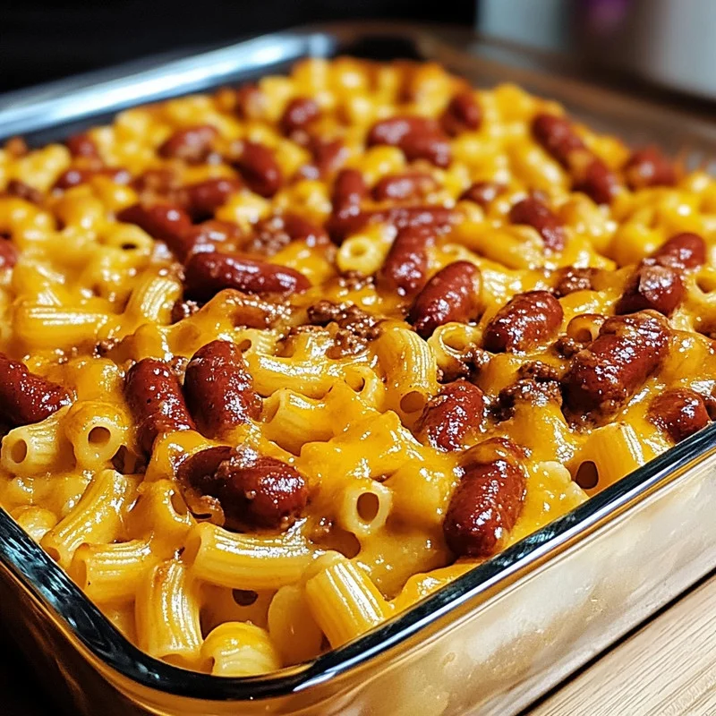 Loaded Chili Cheese Dog Pasta Bake
