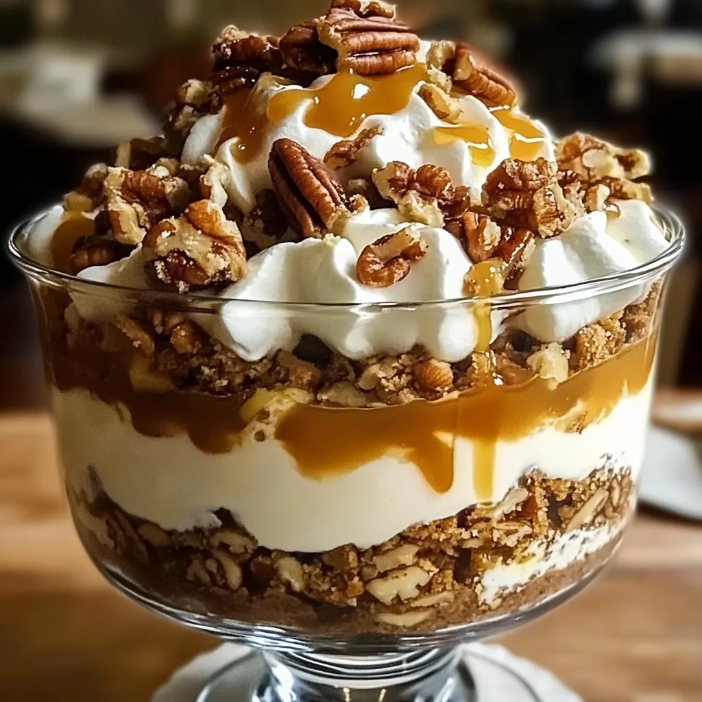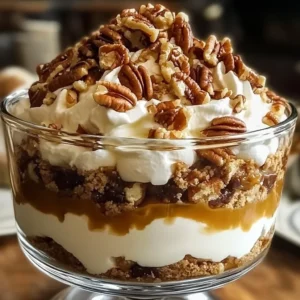 - Assemble Your Masterpiece: Now for the fun part – layering! Start with a layer of your crust mixture, then add a generous dollop of the creamy cheesecake filling. Spoon over some of that warm, gooey pecan pie mixture. You can repeat these layers as many times as your trifle dish allows, or as your heart desires! I like to finish with a final layer of the pecan pie topping for that beautiful, caramel-y finish.