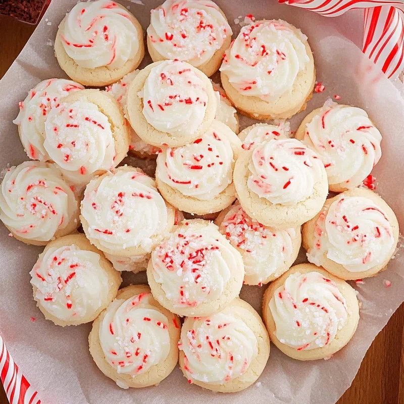 - Finally, the crowning glory! Sprinkle those crushed peppermint candies over the frosting before it sets. They add a lovely crunch and a festive pop of color. And there you have it – your gorgeous Peppermint Meltaways are ready to be enjoyed! If you’re looking for other festive cookie ideas, these strawberry banana pudding cookies are always a hit!