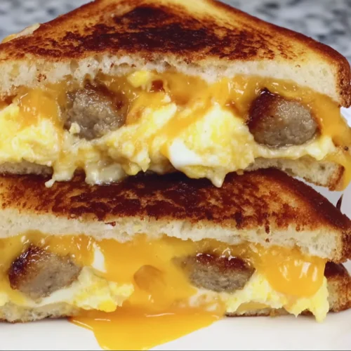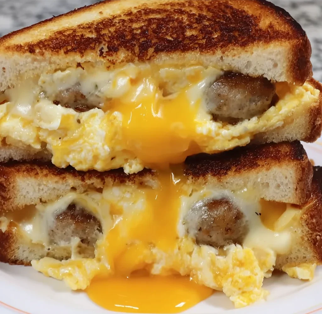 Okay friends, buckle up, because we’re about to talk about a breakfast creation that might just change your mornings forever. Remember those lazy weekend mornings? The smell of something delicious cooking slowly filling the house? This recipe brings back all those cozy vibes, but in a way that’s surprisingly quick and ridiculously satisfying. It’s a grilled cheese, yes, but elevated into a full-blown breakfast dream. We’re talking perfectly cooked sausage, fluffy scrambled eggs, and gooey melting cheese, all tucked between buttery, golden-brown slices of sourdough. It’s easy, it’s comforting, and honestly, once you try it, you’ll wonder where it’s been all your life!