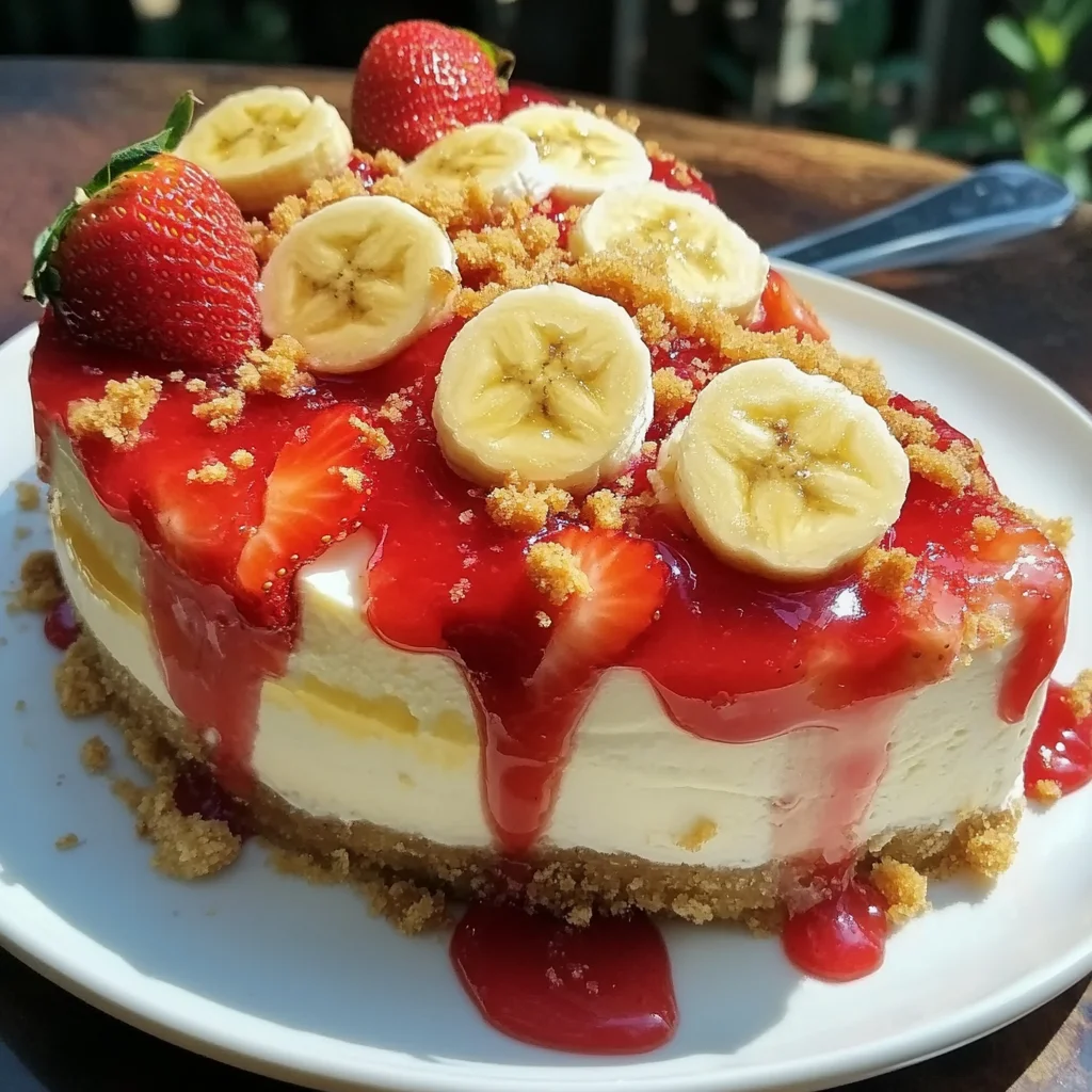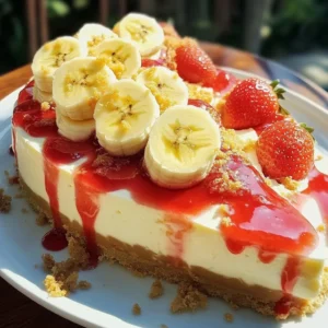 - The moment of truth! Once your cheesecake is perfectly chilled and firm, it's time to add those beautiful toppings. Spread your favorite strawberry jam or sauce all over the top. Then, arrange those fresh banana slices, dollop on some fluffy whipped cream, and sprinkle with those extra graham cracker crumbs for a lovely finish. It's a work of art, and it tastes even better than it looks!